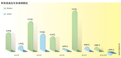资料显示,世荣兆业主营业务为房地产开发与经营,所开发项目主要集中在珠海。不过,世荣兆业在今年第一季度业绩并不理想,其营收4379.6万元,较2015年同期增加142.53%,但归属净利润为-3469.8万元,同比下滑34.33%。