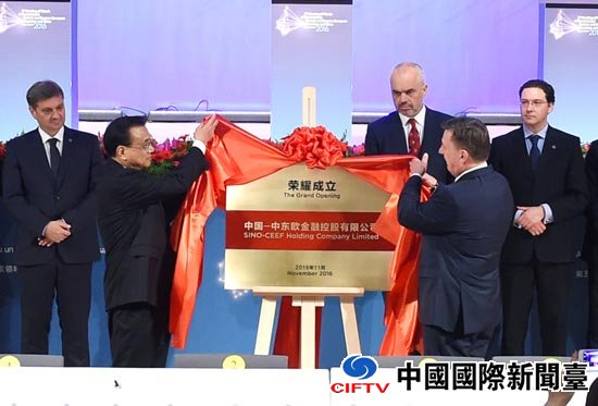 随后,李克强与拉国总理为中国─中东欧金融控股有限公司揭牌。
