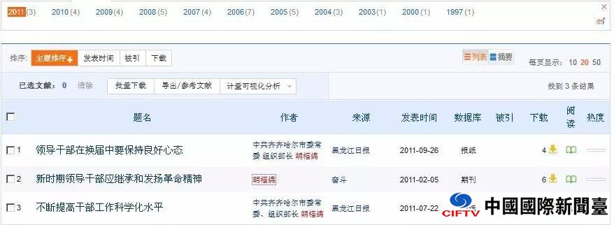 政知局(微信ID:bqzhengzhiju)注意到,他曾在《齐齐哈尔日报》、《黑龙江日报》、《农民日报》等报刊上发表不少党政经济方面的文章。早在1997年他担任克东县委书记时,就曾经发表过《根治水土流失发展农村经济》的文章。而在他卸任组织部长的2011年,他还发表了至少三篇文章。