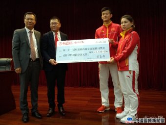 图:曾智明(左二)与曾智雄(左一)向奥运金牌运动员代表谌龙(右二)和张梦雪(右一)颁奖\大公报记者谭笑摄 中国国际新闻台( www.ciftv.com )9月2日北京讯(记者顾宝军)1日,曾宪梓体育基金会在北京国家体育总局,为里约 ... [详细]