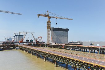 图:沪通大桥建设工地 中国国际新闻台(www.ciftv.com)消息1月28日,长江南通段。寒风夹着雨雾扑面。港澳台媒体採访团的记者们一下车,就被映入眼帘的沪通长江大桥施工现场巨型桥墩、高耸立柱的壮观与繁忙所震撼。中共南通市 ... [详细]