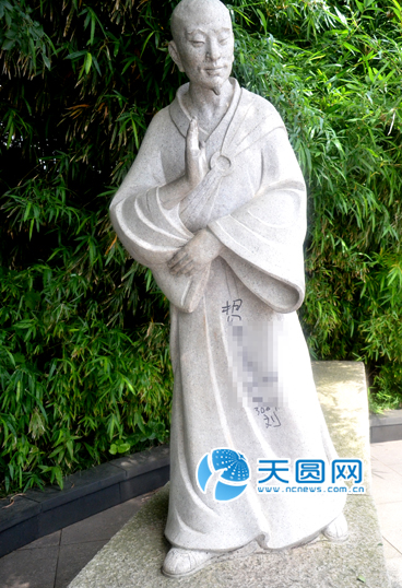 随后,记者就此事向赣江市民公园管理人员进行了反映,几名工作人员赶到现场表示将对涂鸦进行清洗处理。当日晚20时许,天圆网记者再次来到赣江市民公园赣文化长廊看到,3尊历史名人身上的涂鸦已被清理干净。
