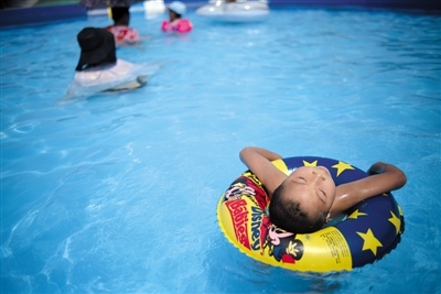 亦庄,市民在水上游乐园戏水。昨日是入伏第一天,北京的气温创下今年新高。新京报记者 王嘉宁 摄