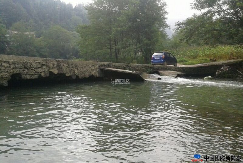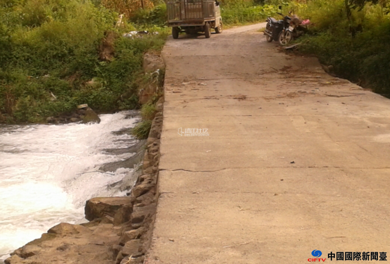 “滚水坝”坝基大部已被河水淘空,但作为老寨村村民们跨越中涧河的惟一通道,坝面上依然人来车往,构成重大安全隐患。