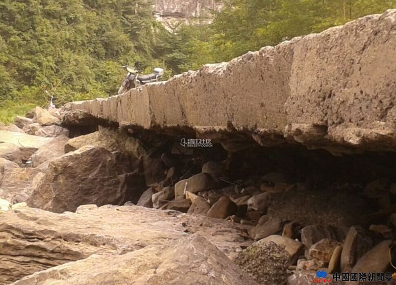 10月19日上午,记者在咸丰县高乐山镇老寨村看见:一座用石头浆砌的“滚水坝”坝基大部已被河水淘空,但作为老寨村村民们跨越中涧河的惟一通道,坝面上依然人来车往,构成重大安全隐患。