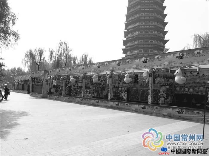 记者看到,10个小棚子里有5个被用红布遮了起来,另5个里面既没有工作人员,又没有游客光顾。只有套圈摊子前面游客较多,挤了10多个大人和小孩,5分钟里,先后有男女两位游客花钱玩了起来。