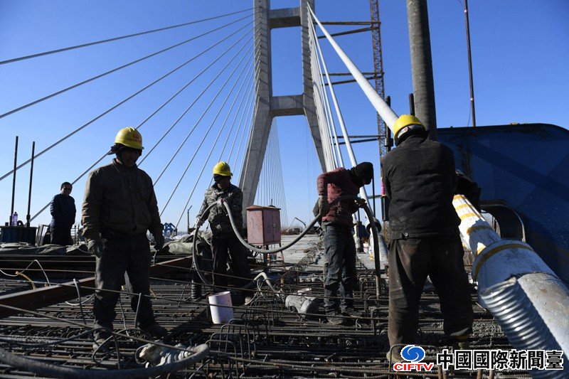 11月27日,工人在潮白河大桥工地施工。为推动京津冀协同发展,缓解河北燕郊地区与北京的交通压力,连接北京通州与河北燕郊的潮白河大桥于2015年开工建设。桥梁全长1118.6米,目前总体施工量已完成83%,预计2017年7月完成全部施工任务。新华社记者 金良快 摄