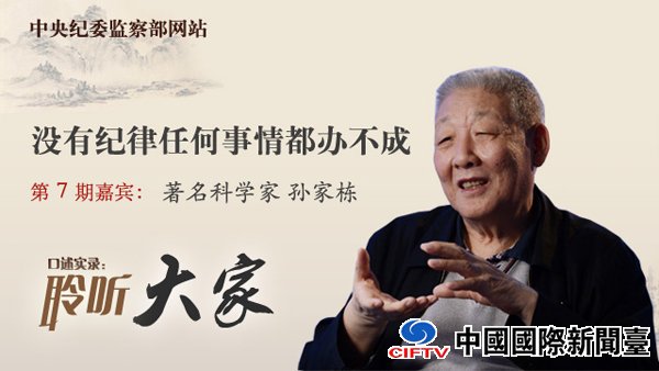 2015年3月,中央纪委监察部网站“聆听大家”栏目专访了孙家栋院士。在那次访谈中,孙老谈人生经历、谈航天精神、谈中国梦,还结合自己的工作体会,详述对纪律的理解,老人八十余载波澜壮阔的人生历程与充盈的人生感悟,带给了我们深深地感动和启迪。