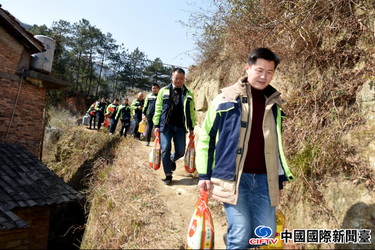 湖南省娄底市的党员爱心志愿者团队纷纷开展下乡村送温暖活动。志愿者心系山区群众,带着慰问物资,行走在崎岖的山路间,为当地20多户贫困户送去生活物品,送上新春祝福。