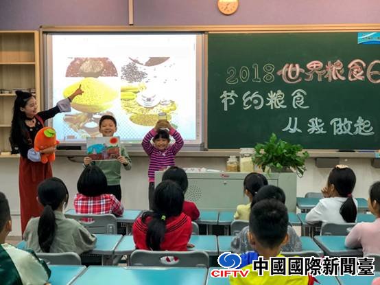 杭州市西湖区育才小学,老师为同学们讲解粮食相关知识,教育孩子们要珍惜粮食。
