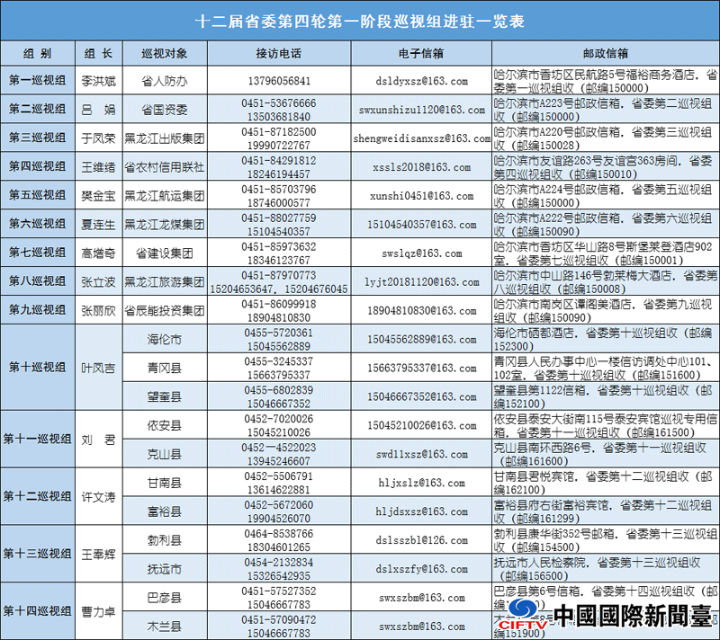 经黑龙江省委批准,十二届省委第四轮巡视对省国资委党委及15个省属国有企业党委开展常规巡视;对11个县开展脱贫攻坚专项巡视;对全省人防系统腐败问题开展省市县专项巡视巡察上下联动。日前,省委第四轮14个巡视组全部进驻第一阶段20个被巡视地区和单位。