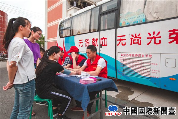 安徽省宿州市埇桥区春光社区的志愿者正在献血。(苏洋 摄)
