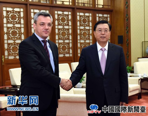 5月20日,全国人大常委会委员长张德江在北京会见波黑议会民族院轮值主席塔迪奇。 新华社记者饶爱民摄