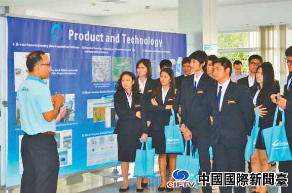 图:中国技术人员向泰国孔敬大学学子介绍北斗地球空间信息知识/资料图片
