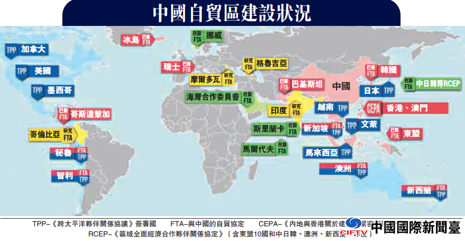中国国际新闻台(www.ciftv.com)8月31日讯(记者顾宝军)作为推进投资便利化和贸易自由化的有效工具,自由贸易区发展受到世界多数国家重视。30日,中国社科院金融研究所在京发布《自贸区蓝皮书:中国自贸区发展报告(2016)》,内容指,虽然当前内地自贸区建设已初步形成了以周边国家和地区为基础的自贸区网络,但中国自贸区(FTA)建设存在五大问题:贸易伙伴经济体量较小、与自贸伙伴的贸易关系紧密度不足、自由贸易区开放的业务有限、无法全面适应TPP为代表的自由贸易区规则、亚太地区诸多国家之间存在的利益冲突明显。对此,《报告》建议加快推进自贸区(FTA)建设,藉“一带一路”建设扩大“朋友圈”。