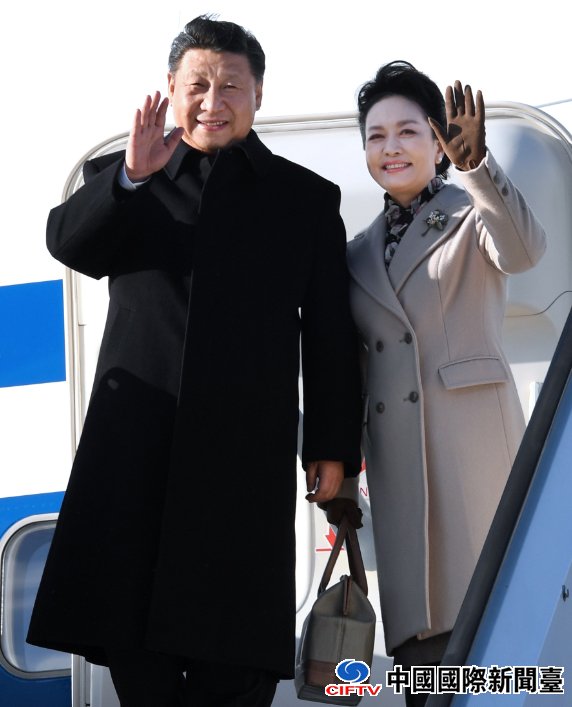 当习近平乘坐的专机进入芬兰领空时,芬兰空军2架战机升空护航。当地时间下午5时55分许,专机抵达赫尔辛基万塔国际机场。习近平和夫人彭丽媛步出舱门,芬兰政府代表、农业与环境部长蒂利凯宁等在舷梯旁热情迎接。