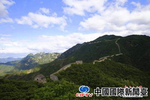 资料图:慕田峪长城上的蓝天白云景象。中新社发 张浩 摄