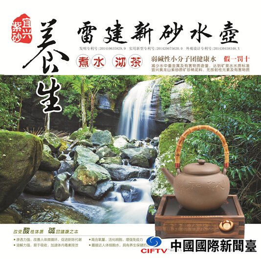 创制这种神奇的养生“砂水壶”的是宜兴远近闻名的砂锅大王—雷建新先生。雷先生1996年就在优质紫砂泥主矿区黄龙山四号井宕口边创办了紫砂砂锅厂,最多时一天要出产一万多只砂锅,一年出口欧美300多万美元。同时雷先生也是一位非常注重养生的人,他在健康饮食上也颇多研究。他家每餐用的调料,包括酱油、醋都是自己采集原料自己制作,百分百的纯天然。他在自制茶壶时无意中接触到了对人体健康有益的小分子团水,研制出了独一无二的“砂水壶”,从而开启了紫砂水壶改变水质达到养生的新功能。
