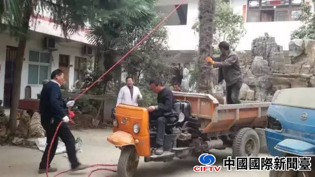 大吊机在作业 右一为秦少亭大夫,右二为如意寺负责人张台