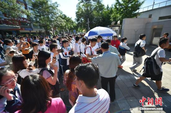 2015年6月7日,全国942万考生将赶赴高考考场。今年高考,采用全国统一命题的省份增至18个。今年开始,高校自主招生延至高考后进行,申请参加自主招生的学生也要参加全国统一高考。此外,今年起,高考加分大幅“缩水”,体育特长生、中学生奥赛等多种加分项目被取消。图为北京八中高考考点。中新网记者 金硕 摄