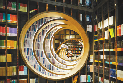 图为4月20日,读者在新开张的北京钟书阁西单老佛爷店浏览图书。 |