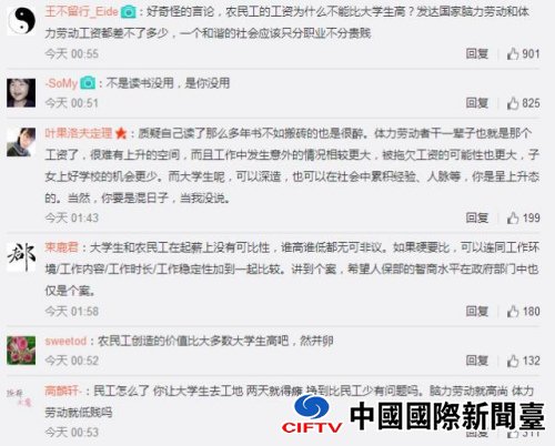 “大学生不如农民工”的话题引发了很多网友的反对,许多人都认为这样的比较实质上是对农民工的偏见与歧视。