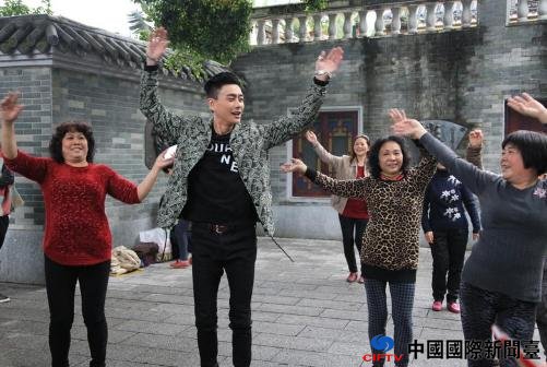 黄宗泽在节目中与大妈跳广场舞