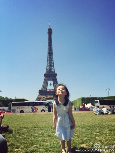 李小鹏爱女埃菲尔铁塔前留影 穿波点长裙舞动(图)(3)