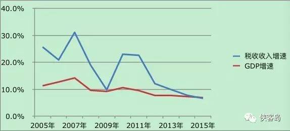 岛妹整理了过去十年的税收收入增速与GDP增速,趋势大体一致。但在绝大多数年份,税收增速都远高于GDP增速。例如,2010年后的5年,经济增速下滑,下行压力增大,企业也遭遇了成本升高、利润下降的现实困境,然而除了税收收入增速依然高于GDP增速,直到去年,随着大量企业盈利能力继续下降、经济“脱实向虚”的问题更为严重,税收收入增速才略低于后者0.3个百分点。