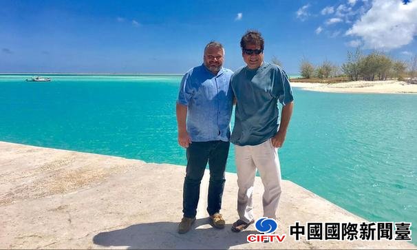 俄罗斯富豪安东·巴科夫(左)认为身后这片湛蓝的海域是再建“俄罗斯”的合适地点。(图片来源:英国媒体)