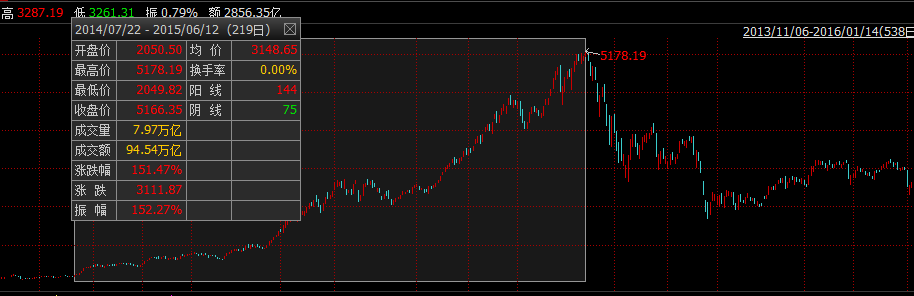 上一轮牛市自2014年7月22日延续至2015年6月12日,累计219个交易日,反弹幅度高达151.47%。
