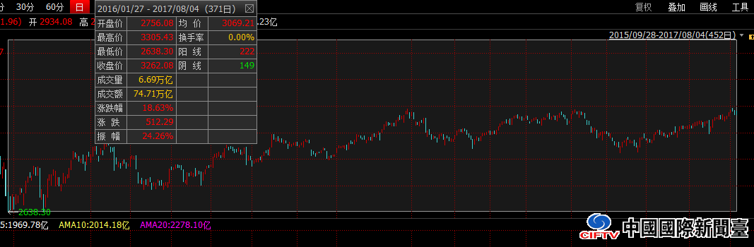 上周,沪综指顺利突破3300点,最高上探至3305.43点,创下了2016年1月27日以来反弹新高。截至8月6日,去年1月下旬低位反弹以来,沪综指累计反弹幅度为18.63%。此轮反弹历时371个交易日。