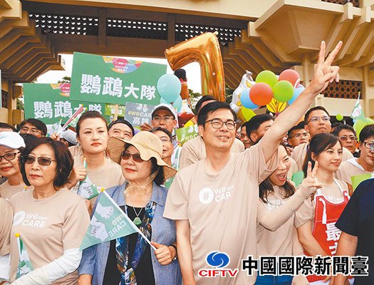 “花妈”人马高雄市前文化局长尹立,在去年市长选举前辞官转投台湾社团“Wecare高雄”,以民间团体之姿替陈其迈辅选,图为去年11月17日举办热气球游行活动,当时市长候选人陈其迈(前排中)、陈菊(前排左二)等人均参加。(图片来源:台湾“中时电子报”)