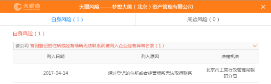 而大熊公寓背后的实际操作人是谁?记者就天眼查上查询发现,大熊公寓的实际控股人为王四会。其名下有梦想大熊(北京)资产管理有限公司以及北京昊园恒业房地产经纪有限公司,分别资本分别为1000万与5000万。而大熊公寓曾因登记的住所无法联系而被列入企业经营异常名单。