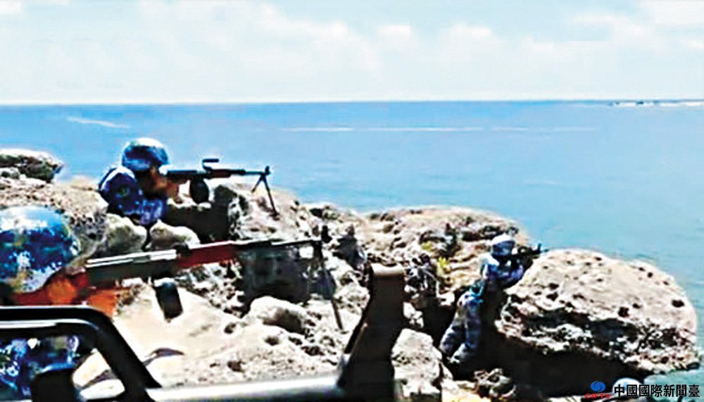 图:琛航岛守备部队进行轻武器射击训练 央视截图