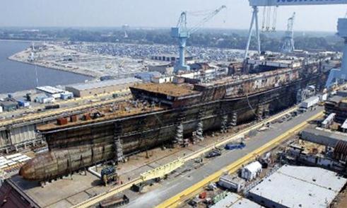 图:“万吨大驱”在船台上分段组装\网络图片