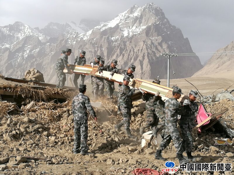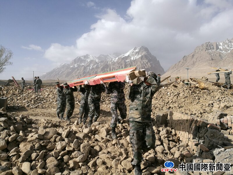 与此同时,战区派出的抗震救灾工作组抵达灾区后,立即走村入户了解灾情,看望慰问受灾受伤群众,了解灾区群众亟需解决的现实困难。在库孜滚村,当得知塔吉克族老人卡马力家中有3位亲人不幸遇难时,战区工作组带队的参谋长助理邓玉恩专程送去慰问品,卡马力老人握住工作组成员的手,嘴里一个劲儿地念叨着:“感谢党和政府,感谢解放军……”不仅如此,工作组还分方向走访慰问正在现场施救的一线部队官兵,要求他们发扬不怕牺牲、连续作战的战斗精神,救人民群众于水火之中。同时,他们还围绕人员搜救及危房清排、物资筹措及发放、军地协作救灾及伤病员救治等方面,及时与新疆军区抗震救灾前线指挥组、当地政府部门对接了解救灾进展情况。