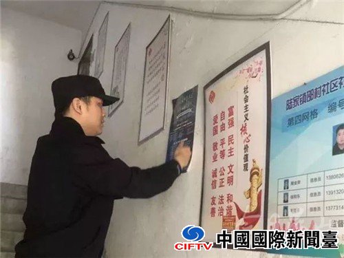 △社区民警张贴扫黑除恶专项斗争宣传海报