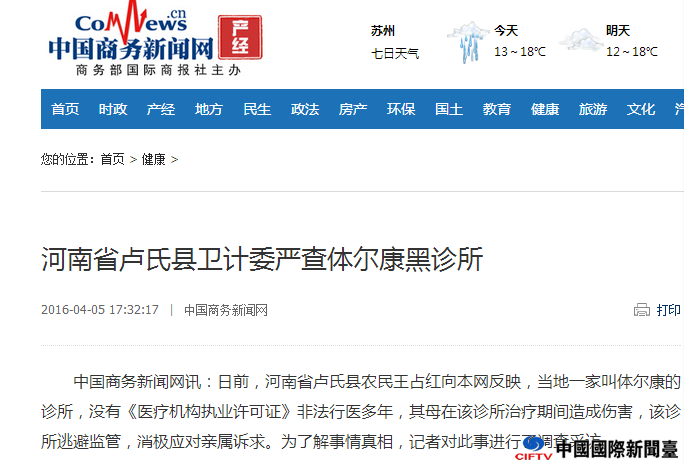 为了维护卢氏县当地良好的就医环境和当地群众的生命健康,针对城关镇寨子村体尔康诊所涉嫌非法行医查处的相关情况,本网将继续追踪报道。