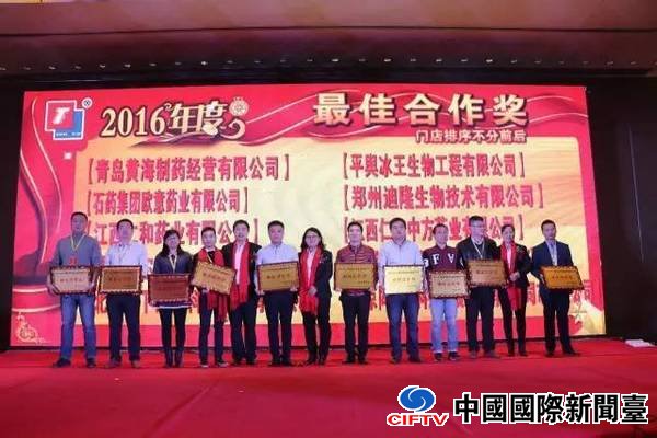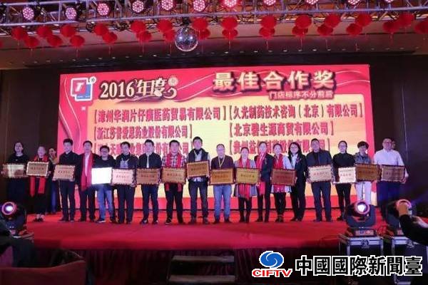 由青岛同方药业连锁有限公司副总经理位强先生、青岛同方药业连锁有限公司副总经理马玉芳女士、青岛同方药业连锁有限公司商采中心总监李春燕女士为【最佳合作奖】获奖单位颁奖;