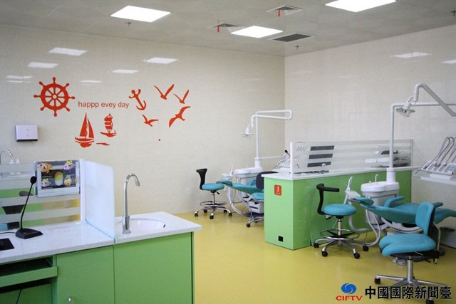 而提及新院优质的服务,就不得不说设立的儿童口腔科,这也是全区唯一专门针对儿童口腔问题的科室。走出6楼的楼梯间,印入眼帘的就是一个很萌小黄人,让人眼前一亮,而来到口腔科之后,你会感觉自己来到的是一个童话乐园而不是医院,四周的墙壁上都贴有小树、小草等卡通画,两个蓝色的机器猫在导医台做“迎宾”。哪怕进到诊室之后,墙上的暖色调贴花让你心里一热,处处彰显着童趣。除了这些细节之外,该科室配置了专门的儿童口腔诊疗椅,比正常椅子小一号,颜色温暖。