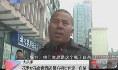 虽然疑点重重,但警方判定女孩系自杀。 家人未见到女孩最后一面,在酒店门口摆花圈讨说法,要求酒店老板出面给出合理解释,女孩母亲失去爱女精神失常。(稿件来源:河南电视台公共频道)