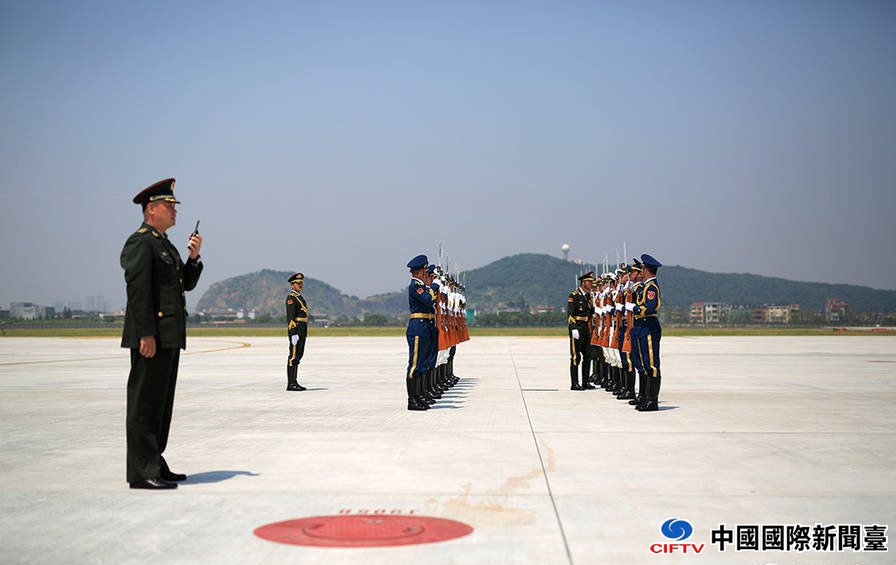 9月2日,杭州,仪仗队在杭州萧山国际机场迎接外宾。