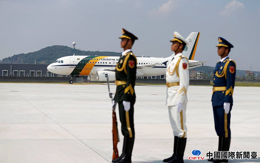 巴西总统的飞机抵达机场。