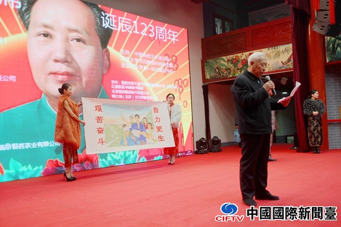 为深入贯彻落实习近平总书记关于文化强国的讲话精神,传承弘扬红色历史文化,缅怀和歌颂开国领袖毛主席和老一辈无产阶级革命家的丰功伟绩,筹委会与中央电视台中国文化产业规划网山东鲁一集团有限公司天津贵云通商贸有限公司(重整网)中文盛辉文化产业有限公司廊坊市增盛文化传媒有限公司共同承办隆重纪念毛主席诞辰123周年大型书画展活动,此活动于2016年12月25日在北京市通州区华丽空中四合院(中央电视台“百星苑”栏目拍摄基地)隆重举行。与会人员有曾在毛主席身边工作的老首长19名;93大阅兵时期的新四军、八路军的10名老将军;开国元勋董必武的儿子董良羽、儿媳李黎力;原驻阿尔巴尼亚大使范承祚;原赛福鼎办公室主任董志军;100多位将军部长、中宣部、中央警卫局的领导参加此次活动,来自全国各地的书法家和书画家,活动总人数达到1500人。筹委会主任董文增致词:高举毛泽东思想伟大旗帜,紧密团结在以习近平总书记为核心的党中央周围,沿着习近平总书记指引的新长征航线奋勇前进!