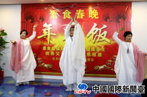 记者在现场采访时发现,今年这台素食晚会不仅具有一般春节民族文化传承色彩、喜庆娱乐色彩,同时也具有能够代表中华素食和饮食文化传播色彩、时尚色彩和深入人心的情感色彩。整场晚会以和谐、环保、健康 、喜庆.、幸福.、希望人人从尚自然,回归自然的理念,把握了人与自然健康和谐,幸福奔向希望的美好祝愿。