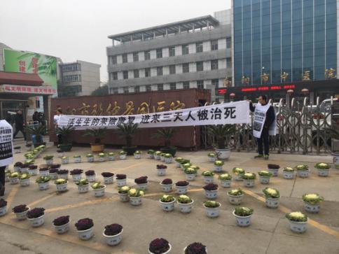 走投无路的死亡幼儿父亲郝磊夫妇在医院门口维权