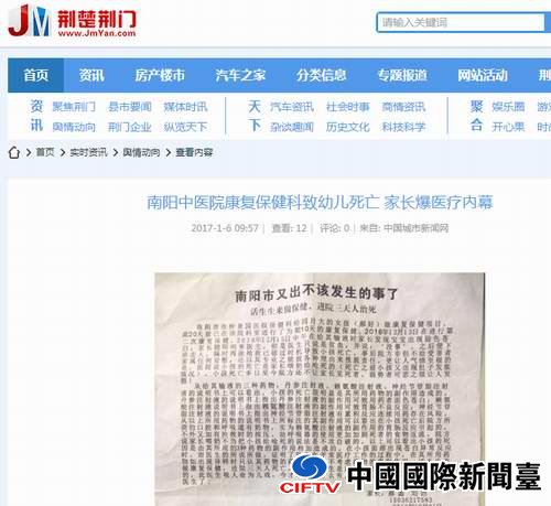 近日,死亡幼儿父亲郝磊及其家人向本网泣述了事情经过。2016年12月13-15日,其3个月21天大的女儿本在南阳市张仲景国医院(原南阳市中医院)做康复保健项目(医学概念是,孩子连感冒都没有的纯康复医疗)。15日上午11点左右,孩子在输液过程中脸色苍白,孩子妈妈刘路发现后及时告知医生,但主治医生景某栋只说是贫血,未做任何处理,态度冷漠、随意、草率、无情,这个医生大摇大摆地下班了。直到下午14:30分医生上班前,刘路都找不到任何医生求助,当时科室没有医生值班。而女儿已经奄奄一息!南阳市张仲景国医院的这种行为,相信很多患者都经历过吧。而后,张路的女儿被送到儿科,又转送ICU,死亡幼儿父亲郝磊夫妇就再也没见到女儿了,孩子死亡7天后,家人甚至连孩子确切死亡时间都不知道!