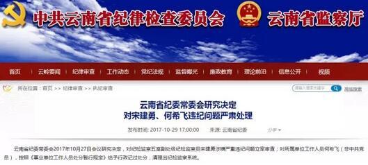 云南省纪委常委会研究决定,对所属单位工作人员何希飞(非中共党员),按照《事业单位工作人员处分暂行规定》给予行政记过处分,清理出纪检监察系统