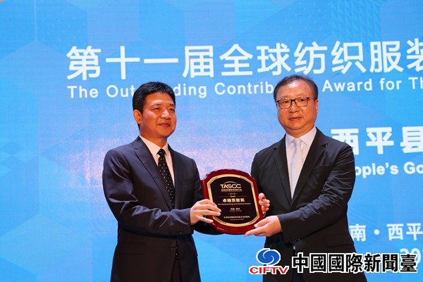 会上,为表彰西平县政府对本次大会的支持,全球纺织服装供应链大会组委会为西平县人民政府颁发“2018全球纺织服装供应链大会卓越贡献奖”。而亨斯迈纺织染化、以色列高德拉特咨询机构、太极石股份有限公司则分获大会特别贡献奖。